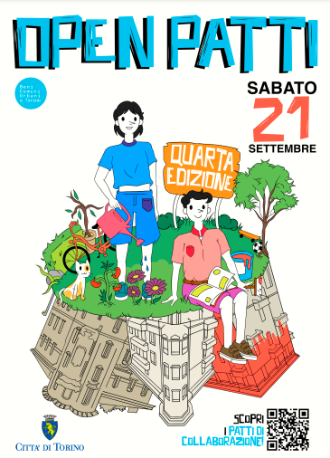 Ritorna l'appuntamento annuale con Open Patti, l'evento creato e organizzato dalla Città per presentare e far conoscere ai cittadini i Patti di collaborazione, strumenti attraverso i quali la cittadinanza cura, gestisce e valorizza molti luoghi e beni comuni su tutto il territorio urbano di Torino, venerdi 20 e sabato 21 settembre 2024.