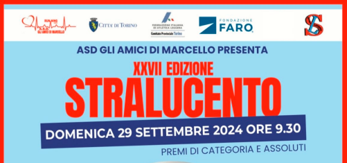 Domenica 29 settembre 2024 avrà luogo la "XXVII Stralucento - VII Memorial Marcello VIRELLI" patrocinato dalla Circoscrizione 5. Aprirà la Stralucento la Baby Run alle ore 9:00.