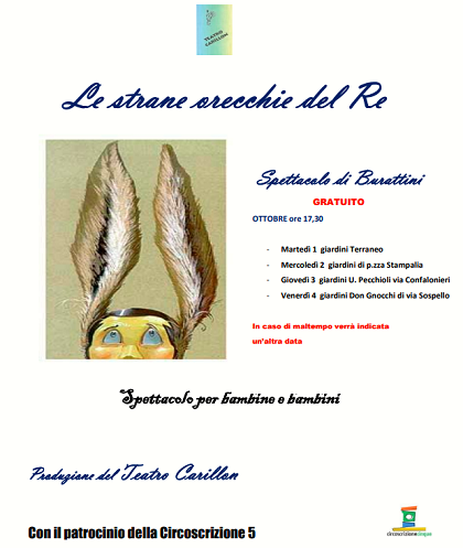 Spettacoli burattini "Le strane orecchie del re" patrocinato dalla Circoscrizione 5.