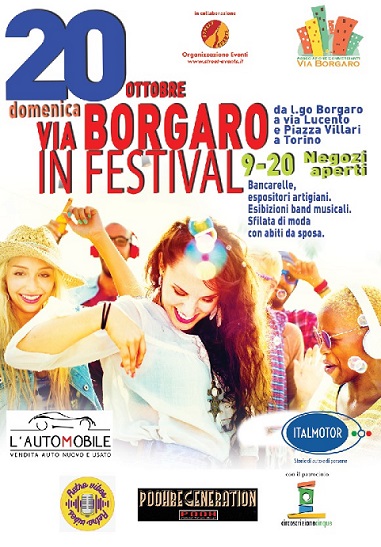Domenica 20 ottobre 2024 avrà luogo la festa di via "Via Borgaro in festival" organizzata dall'Associazione commercianti ed artigiani di via Borgaro; sarà interessato il tratto tra l.go Borgaro e via Lucento (escluse) dalle ore 09:00 alle ore 20:00 circa. Saranno protagonisti i negozi della via e bancarelle di prodotti tipici, hobbisti e artigiani.