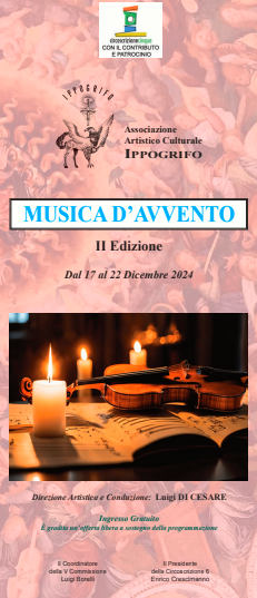 L'Associazione Artistica Culturale Ippogrifo, propone una rassegna di concerti nelle date 17, 19 e 21 dicembre 2024 alle ore 21:00, presso tre Chiese storiche della Circoscrizione 5 con un programma variegato in cui si intrecciano varie forme e generi musicali di ogni epoca e provenienza. L'ingresso agli eventi č gratuito.