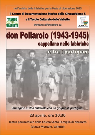 L'introduzione al dibattito su don Pollarolo si soffermerà sul suo impegno durante il periodo della resistenza. Nel 1943 è già impegnato in alcune fabbriche della zona dell'attuale Circoscrizione 5 come cappellano e predicatore: la Elli Zerboni, la Superga, la CIR, la Savigliano e la Stipel di via Borgaro.
