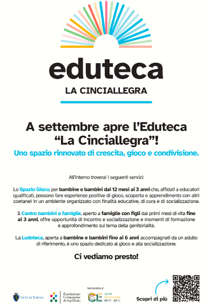 A settembre 2025 č prevista l'apertura della nuova sede dell'Eduteca La Cinciallegra in via Parenzo 42 - Circoscrizione 5, Quartiere Le Vallette -Torino-