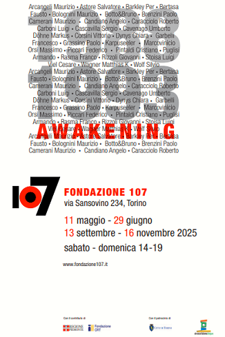 Fondazione 107 sabato 10 maggio 2025 inaugura presso la propria sede di via Sansovino, 234 Torino la Mostra d'arte contemporanea Awakening (1988-1993), con il patrocinio dalla Circoscrizione 5. L'esposizione sarą aperta dall'11 maggio al 29 giugno 2025