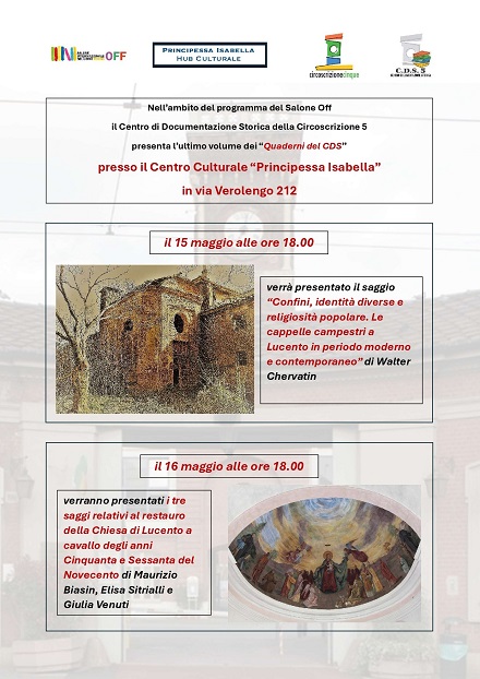 Nell'ambito del programma del Salone Off, il Centro di Documentazione Storica della Circoscrizione 5 presenterą il 15 e il 16 maggio 2025 alle ore 18:00 presso il Centro Culturale Principessa Isabella di via Verolengo 212 Torinoi saggi sulla storia della chiesa e della vita religiosa di Lucento pubblicati sull'ultimo numero dei Quaderni del CDS.