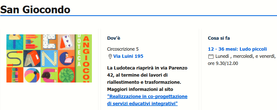 Pagina dedicata alle ludoteche: http://www.comune.torino.it/servizieducativi/ludoteche/ludoteche.htm#sil