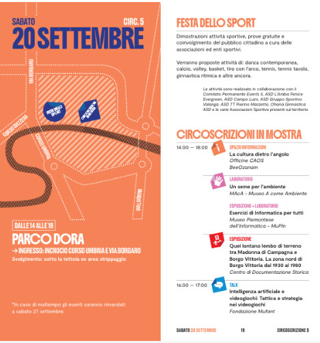 Programma completo 👉https://eventi.comune.torino.it/wp-content/uploads/2025/09/Festa-dello-sport-Circoscrizioni-in-mostra-2025_.pdf