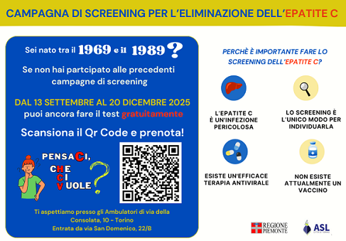 -Per informazioni sulla prenotazione del test si potrą consultare la pagina dedicata del sito aziendale dell'ASL Cittą di Torino al seguente link: https://www.aslcittaditorino.it/screening-delle-infezioni-da-virus-epatite-c-hcv/