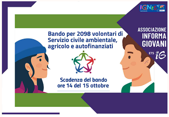 Il Dipartimento per le politiche giovanili e il Servizio civile universale ha pubblicato il bando per 2.098 operatori/trici volontari/e da impiegare in progetti di Servizio civile universale relativi a programmi di intervento di Servizio civile ambientale, di Servizio civile agricolo e di programmi di intervento di Servizio civile universale autofinanziati.