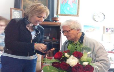 Maria Caterina De Nigris č nata il 31 maggio 1915!! La Presidente Nadia Conticelli ha personalmente consegnato alla sig.a Maria Caterina, gli omaggi del Sindaco e della Circoscrizione 6.
