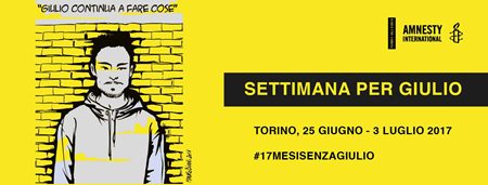 La "Settimana per Giulio" è organizzata da AmnestyInternational Piemonte e Valle d'Aosta e avrà luogo dal 25 giugno al 3 luglio.