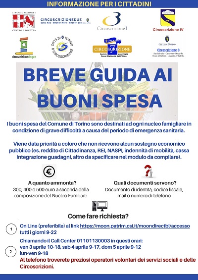 Informazioni dettagliate, aggiornamenti ed elenco punti vendita in Torino abilitati ai buoni spesa, sul sito della Città di Torino