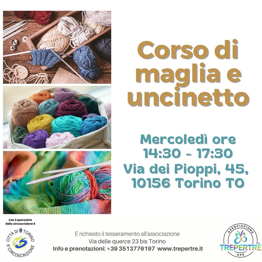 Il nuovo Corso di Maglia curato dall'Associazione Trepertre si propone di introdurre i partecipanti al meraviglioso mondo della lavorazione a maglia e uncinetto, offrendo un approccio dettagliato alle tecniche fondamentali e alla creazione di capi di maglieria funzionali e stilosi esplorando tecniche avanzate e progetti più complessi. Attraverso lezioni dettagliate e sfide stimolanti, i partecipanti affineranno le loro abilità e porteranno le loro abilità un livello superiore.