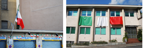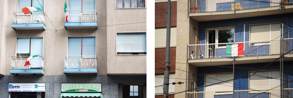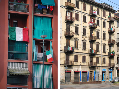 Abbiamo fotografato alcune bandiere esposte sui balconi della Circoscrizione 7 in occasione del 150 anniversario dell'Unitą d'Italia.
