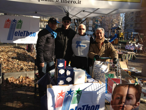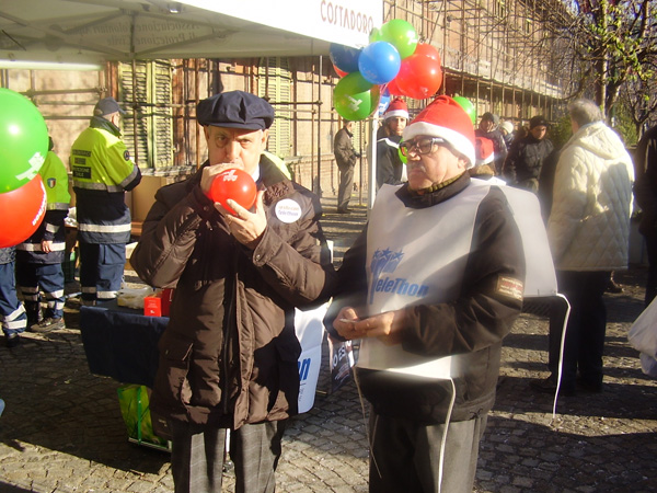 Banchetto Telethon presso il Mercatino di Natale del Balon organizzato dalla Circoscrizione 7 in collaborazione con l'Associazione di Protezione Civile degli Alpini, la Compagnia di San Rocco, i Cecchi Boys e la Compagnia Varallos Company