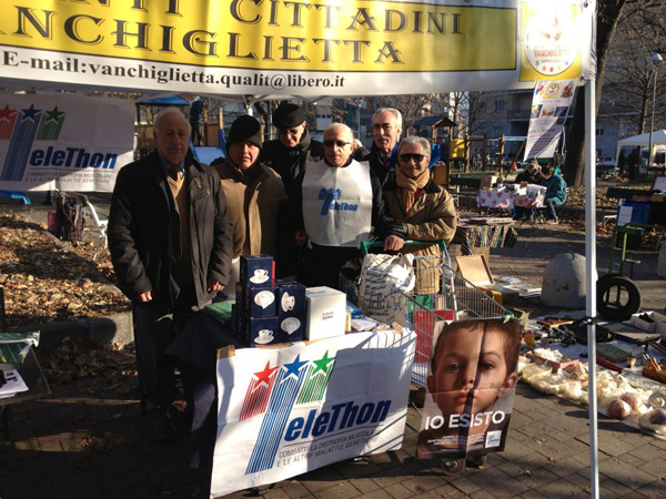 Banchetto Telethon organizzato in piazza Toti dall'Associazione Vanchiglietta-Quartiere a 5 stelle