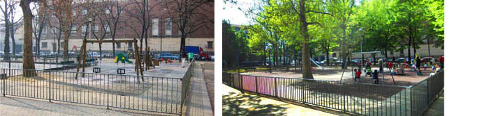 Anche il rapporto tra camminamenti, verde e spazi per attività sportive e di gioco è mutato: il verde è passato da 1400 mq a 2400 mq, con spazi a prato e nuovi alberi; tutte le piante sono state potate anche a vantaggio dell'illuminazione, che ha nuovi corpi illuminanti.