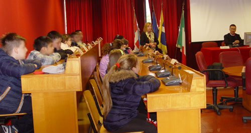 mercoledì 30 aprile una classe della scuola Aurora ha visitato la Circoscrizione nell'ambito del progetto della Città di Torino curato dalla Polizia Municipale.