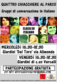 Da mercoledì 2 luglio e fino a fine ottobre, escluso agosto, l'Associazione Arteria realizzerà propone "Quattro chiacchiere al parco" classi di conversazione in italiano.