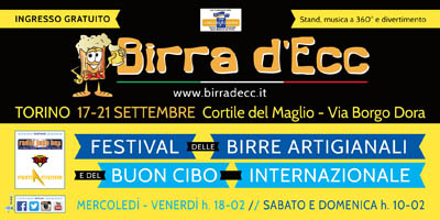 sedici tra i migliori mastri birrai artigianali del nord Italia si troveranno presso il Cortile del Maglio di Torino, in via Borgo Dora, dall'17 all'21 settembre 2014, per far capire cos'è una birra artigianale, degustarla, apprezzarla ma anche abbinarla al buon cibo il tutto inframmezzato da intrattenimenti e spettacoli e mercatini vari.