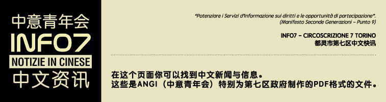 Sono disponibili documenti in formato pdf realizzati dall'Associazione ANGI (Nuova Generazione Italo-cinese) appositamente per il sito della Circoscrizione 7.