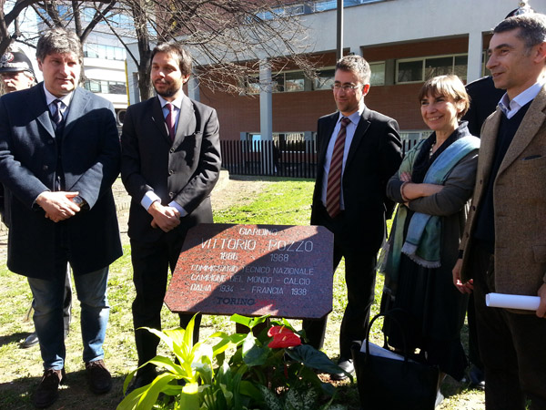 si è svolta la cerimonia di intitolazione del giardino compreso tra corso Regina Margherita e Lungo Dora Siena, adiacente il Campus Einaudi, a ricordo di Vittorio Pozzo