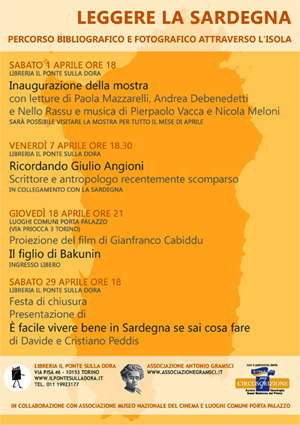 L'Associazione dei Sardi in Torino "A.Gramsci" e la Libreria Il Ponte sulla Dora propongono un nuovo appuntamento a Torino, da sabato 1 al 29 aprile in collaborazione con l'Associazione Museo Nazionale del Cinema e "Luoghi Comuni di Porta Palazzo.