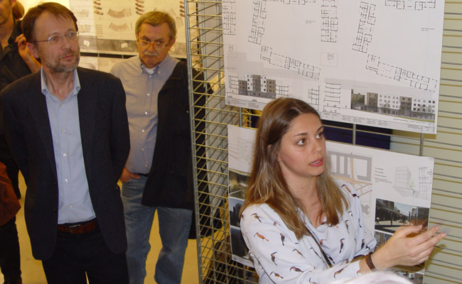 I professori Gustavo Ambrosini e Alezio Rivotti e gli studenti dell'Atelier hanno presentato i progetti in una mostra presso la Circoscrizione 7 alla presenza di Luca Deri, Presidente Circoscrizione 7, Valentina Cremonini, Coordinatrice IV Commissione e Guido Montanari, Vicesindaco Città di Torino.