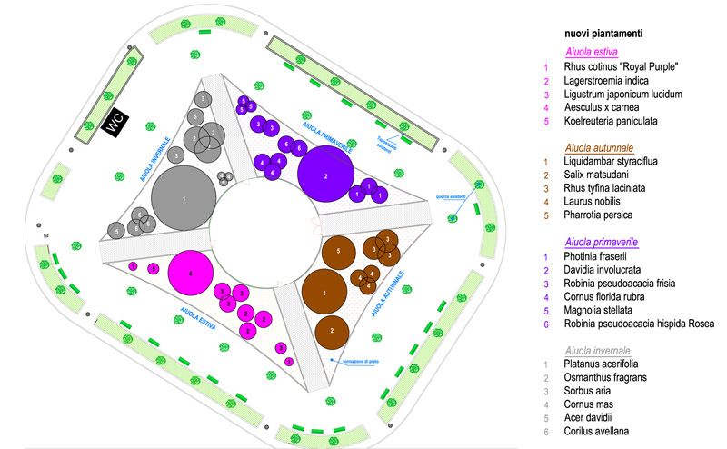 Le quattro aiuole "STAGIONI" sono comprese all'interno della recinzione perimetrale dedicata ai bambini in modo da ampliare l'offerta dell'area includendo il gioco libero nel verde.