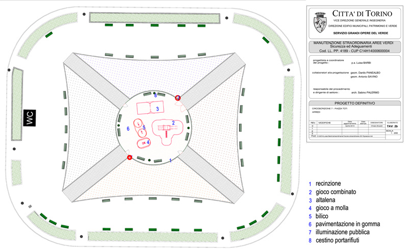 Il progetto Manutenzione Straordinaria "Aree Verdi Sicurezza ed Adeguamenti" di cui i giardini di Piazza Toti sono parte integrante, č stato approvato nell'autunno 2014 ed aggiudicato nel febbraio 2016.
