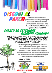 Sarà allestito un gazebo - punto informativo e di discussione sui problema legati al territorio del quartiere Aurora unitamente alla distribuzione di volantini.