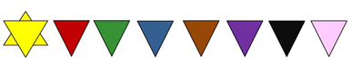 TRIANGOLO VIOLA: Il viola era attribuito agli studiosi delle Sacre scritture (Testimoni di Geova) o ai religiosi in genere, fatta eccezione per i sacerdoti polacchi.