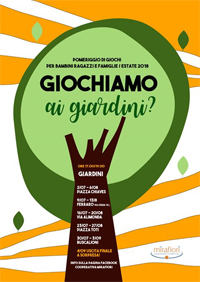 giochi di strada per bambini e famiglie nei giardini della Circoscrizione 7 proposti e condotti dagli educatori della Cooperativa Sociale Mirafiori onlus.