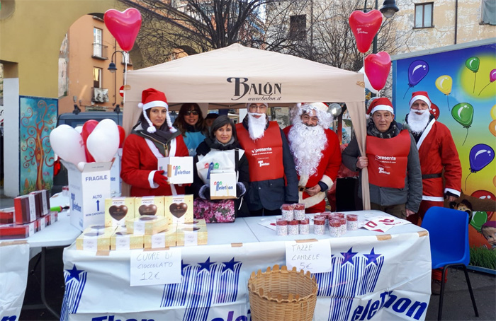 In occasione del Gran Balon di Natale, nello spazio antistante Il Cortile del Maglio, banchetto Casa Telethon con cuori di cioccolato, palloncini e gadget della Fondazione