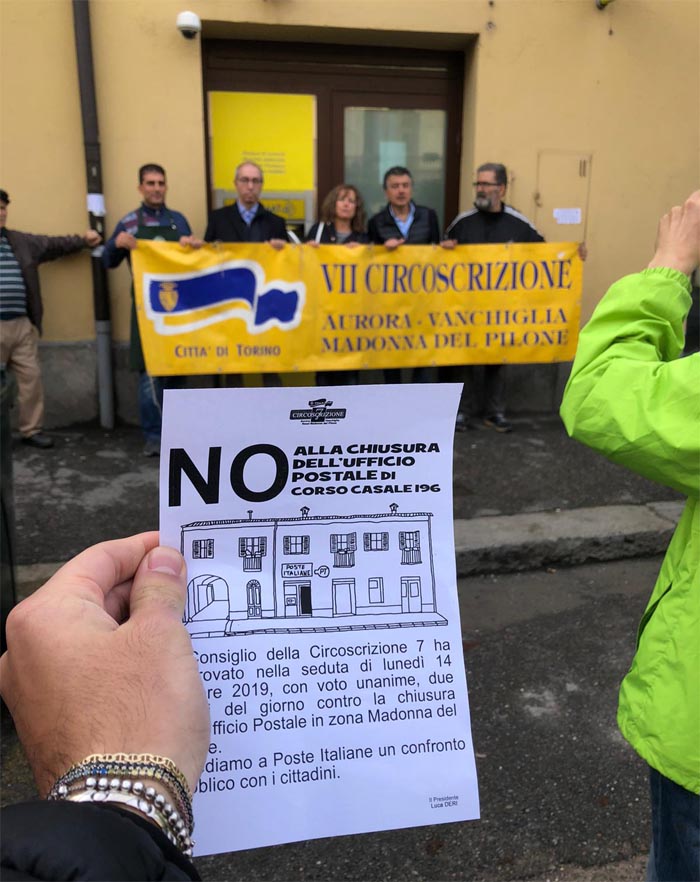 contro la chiusura dell'Ufficio Postale in zona Madonna del Pilone.
