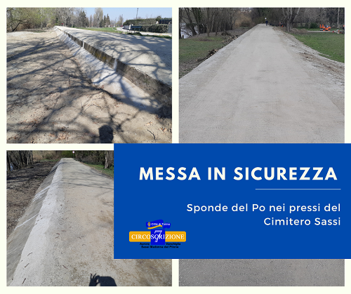 Lavori effettuati nei giorni scorsi di riprofilatura e rialzo della ciclabile e dell'argine destro del Po, dietro al Cimitero di Sassi.