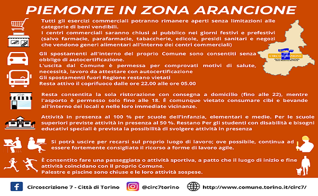 Per effetto dell'ordinanza del Ministro della Salute Roberto Speranza, il Piemonte da ieri č diventato zona arancione.