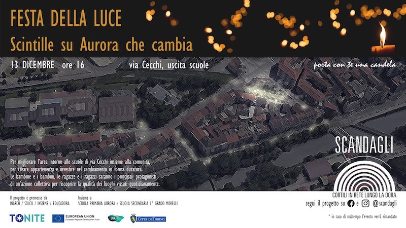 Per saperne di più è possibile visitare la pagina del nostro sito SCANDAGLI, la pagina FB e il profilo Instagram Il progetto è realizzato nell'ambito di ToNite, cofinanziato dal Fondo Europeo di Sviluppo Regionale del programma UIA - Urban Innovative Actions.I partner del progetto SCANDAGLI. Cortili in rete lungo la Dora sono IN/Arch Piemonte, Solco Onlus, Associazione Genitori Insieme, Educadora.