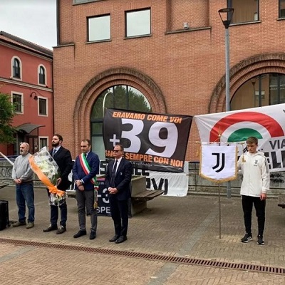 Domenica 29 maggio 2022. In piazzetta Vittime Stadio Heysel, alle ore 11, dopo 37 anni si ricordano i Caduti della Finale della Coppa dei Campioni Juventus Liverpool, per non dimenticare i 39 morti.