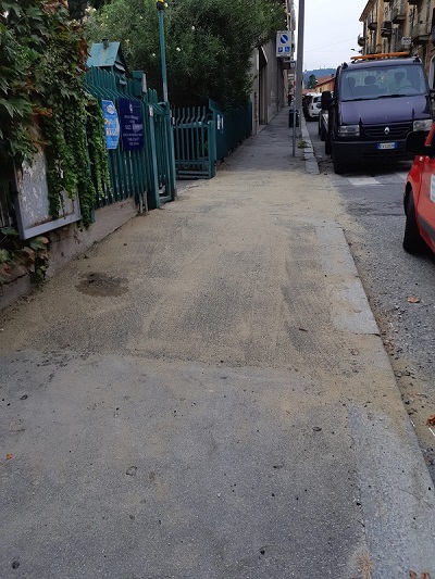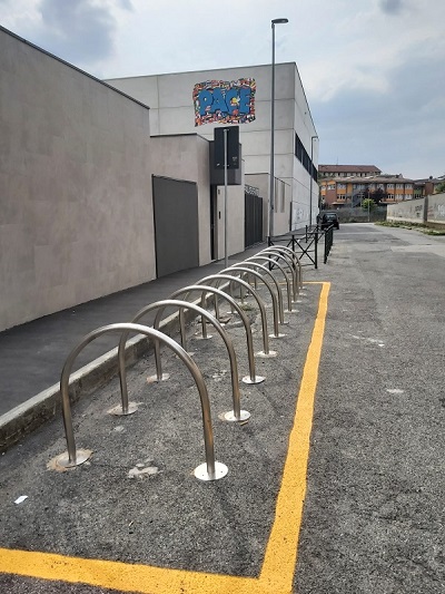 Rifacimento marciapiede via Bardassano 5 (fronte ingresso Scuola Olivetti) e realizzazione penisola marciapiede ingresso PalaSermig in via Carmagnola con posa rastrelliere.