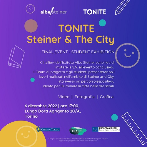 Nell'ambito del progetto finanziato dal bando ToNite, l'Istituto Steiner organizza un evento finale di chiusura per il pomeriggio/sera di martedì 6 dicembre dalle ore 17,00 circa.