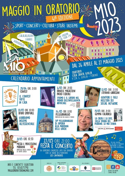 Dal 26 aprile al 27 maggio 2023 c/o l'Oratorio Casa Santa Giulia - in Piazza Santa Giulia, Torino - una serie di appuntamenti di sport, concerti e cultura.