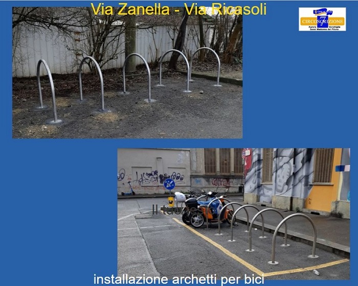 La Circoscrizione 7, per promuovere la mobilitą attiva, ha provveduto a installare una decina di nuovi archetti per le bici, in via Zanella e in via Ricasoli , a disposizione di tutti i cittadini.