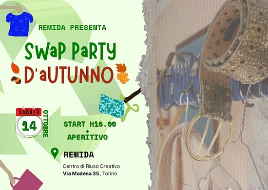 L'evento, che si terrà sabato 14 ottobre 2023 dalle ore 16,00 presso Remida - Centro per il Riuso Creativo - in via Modena 35 , è aperto alla cittadinanza e intende promuovere la cultura di un'economia circolare e del consumo consapevole attraverso lo scambio di vestiti, libri, accessori.