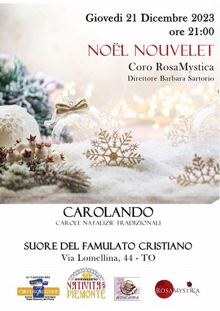 Giovedì 21 dicembre 2023 alle ore 21,00 presso le Suore del Famulato Cristiano in via Lomellina 44.Con il Patrocinio della Circoscrizione 7.