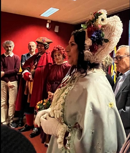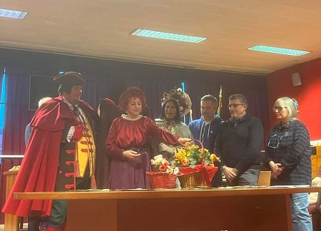 si è svolta l'investitura della Rusnenta, la maschera del Balon, accompagnata da Gianduja e Giacometta.