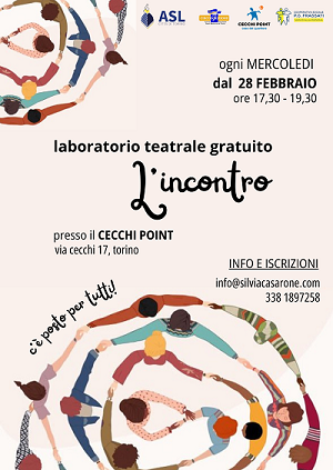 Dalla sinergia tra ASL Città di Torino, la Circoscrizione 7 del Comune di Torino, la Casa del quartiere Cecchi Point e la Cooperativa Frassati nasce l'idea di un Laboratorio Teatrale gratuito aperto alla cittadinanza, che quest'anno si propone nella sua seconda