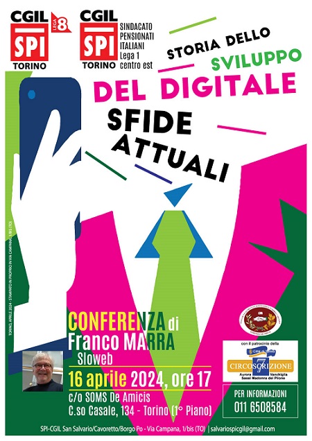Conferenza di Franco Marra (sloweb) martedì 16 aprile 2024 alle ore 17 c/o SOMS De Amicis in C.so Casale, 134 - Torino (primo piano) Per Informazioni011 - 6508584Con il Patrocinio della Circoscrizione 7.