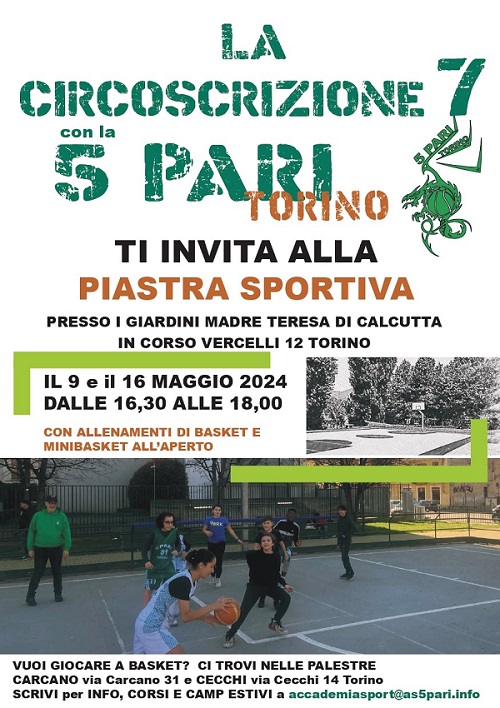 la Piastra sportiva del Giardino Madre Teresa di Calcutta in corso Vercelli 12, per allenamenti di basket e minibasket all'aperto.