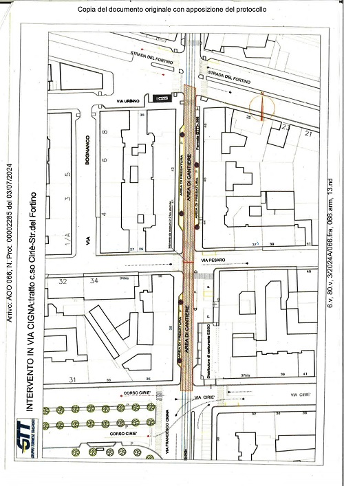 in via Cigna tra corso Cirič e Strada del Fortino, dall'08 al 25 luglio 2024 dalle ore 00:00 alle 24:00, si